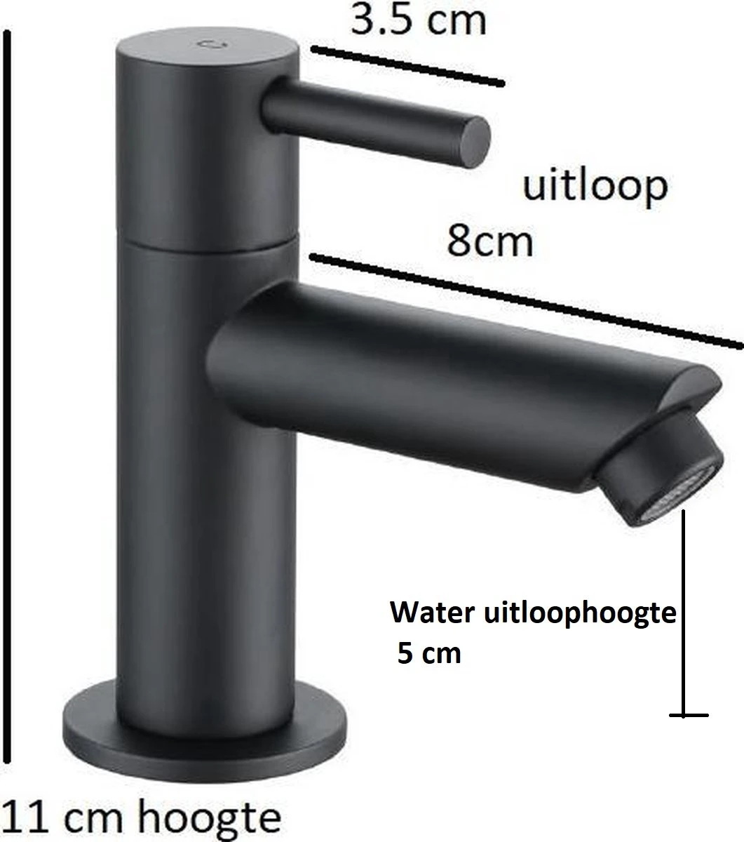 Let op : om teleurstelling en retouren te voorkomen adviseren wij u goed de afmeting van deze kraan te bekijken voordat u deze besteld.
