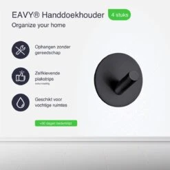 EAVY Handdoekhaakjes Zelfklevend – Set Van 4 Handdoek Haakjes – Wandhaak – Handdoekhouder