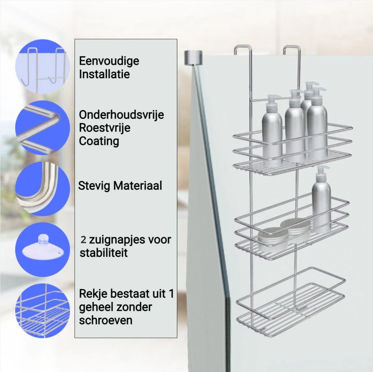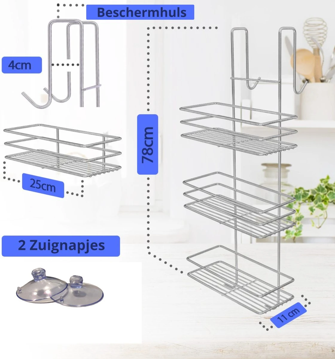 Het Doucherekje bestaat uit 1 geheel, je hoeft geen mandjes vast te schroeven die na verloop van tijd gaan los zitten. Afmetingen (H x B x D): 78 x 25 x 11 cm