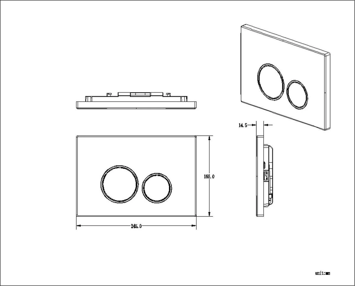 Specificaties Bedieningsplaat StarBlueDisc Doppio 35 TBV Geberit UP100 UP320 UP300 UP700 UP720 Mat Zwart:
