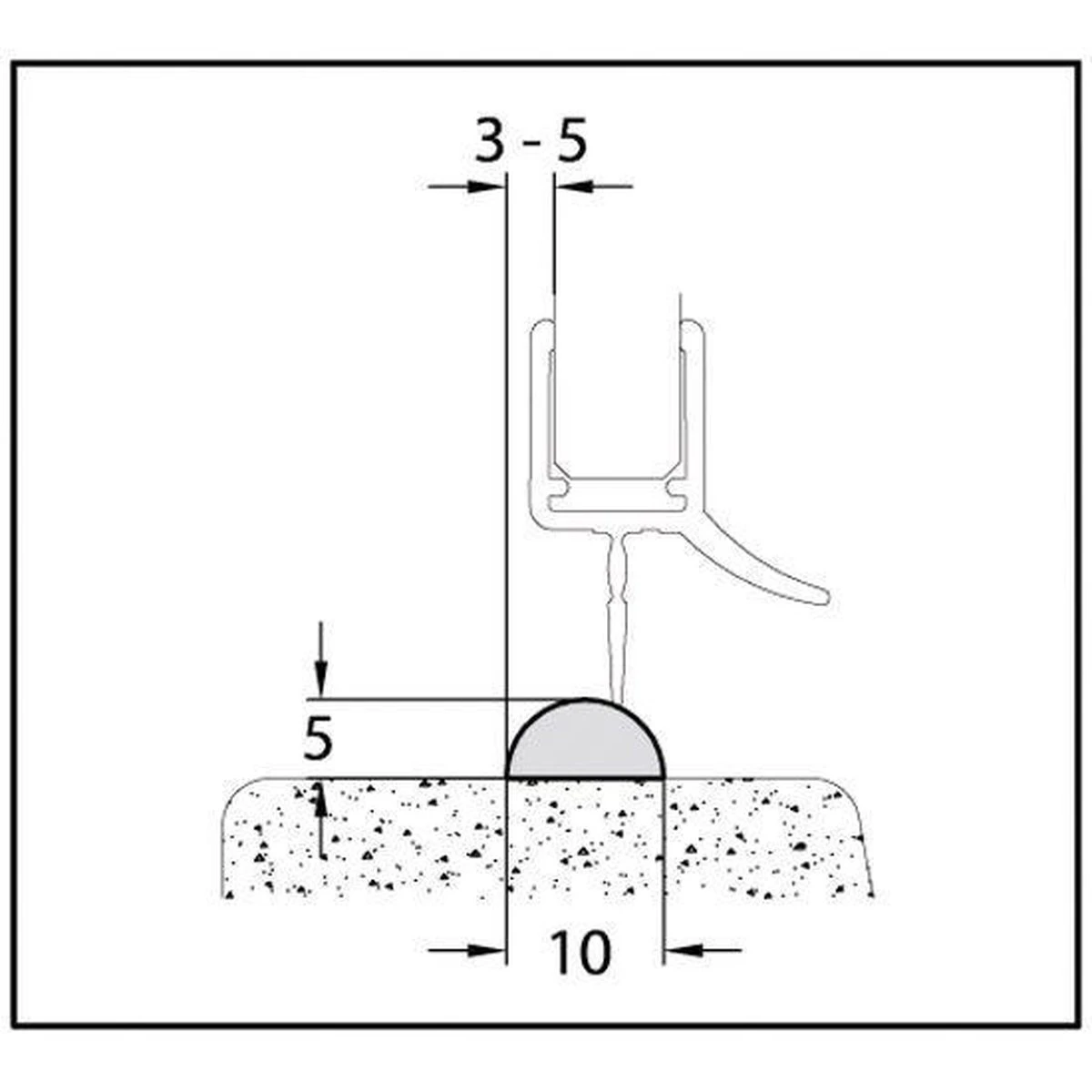 Dorpel voor een waterafdichting. De dorpel zorgt ervoor dat het water niet uit uw douche of bad kan lopen.
