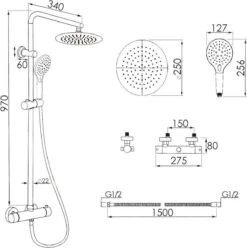 SAAR Opbouw Douche Set – Rond – Thermostaatkraan – Glijstang – Regendouche – Handdouche – Mat Zwart