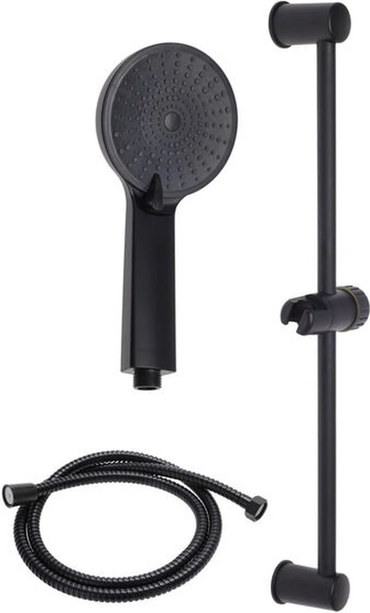 Complete set met een douchekop, slang inclusief muurbeugel. De douche heeft 3 verschillende functies, die tijdens het douchen kunnen worden gewijzigd door aan de douchekop te draaien. Dankzij de houder kunt u de douchekop gemakkelijk verwijderen. Met universeel bevestigingssysteem, geschikt voor alle standaard slangen en kranen. Door de rubberen kanalen wordt er geen kalk aan het oppervlak vastgehouden.