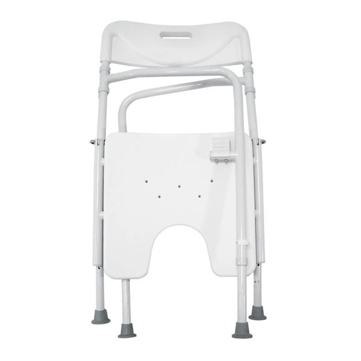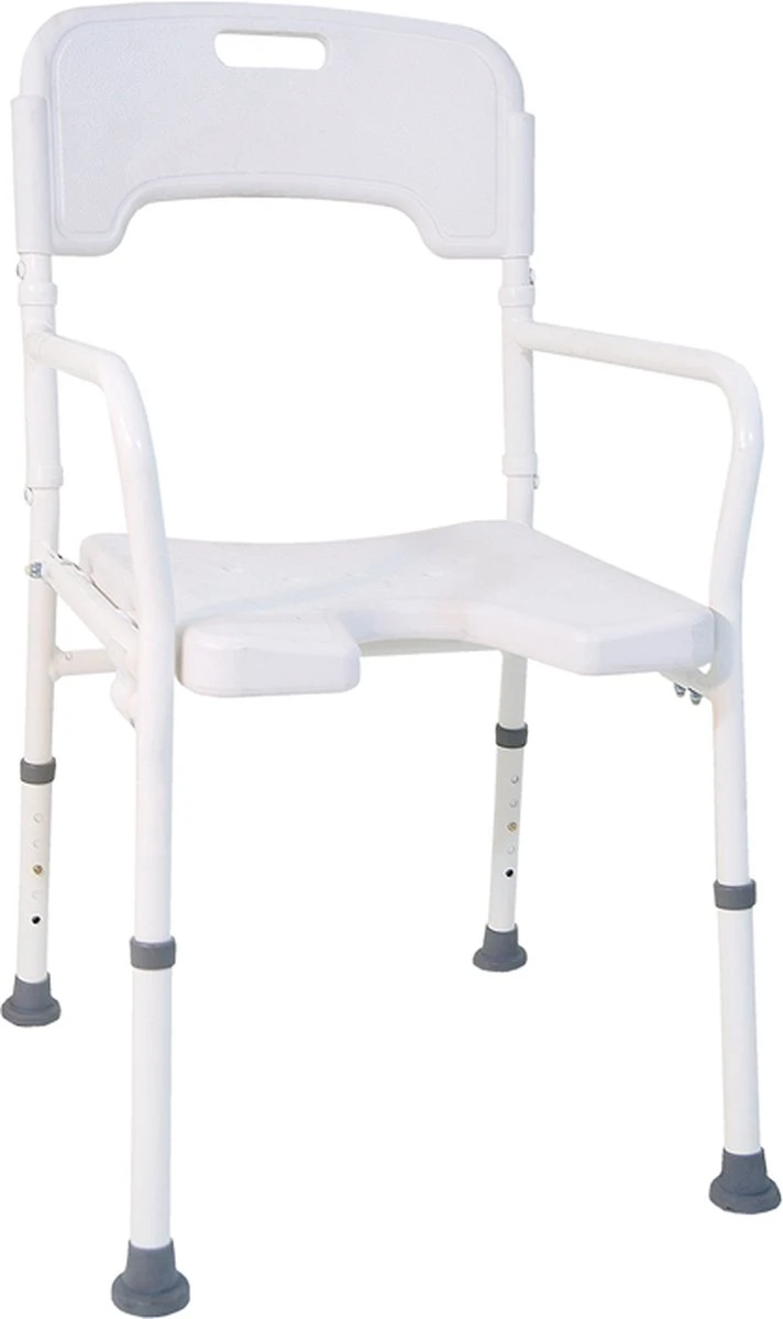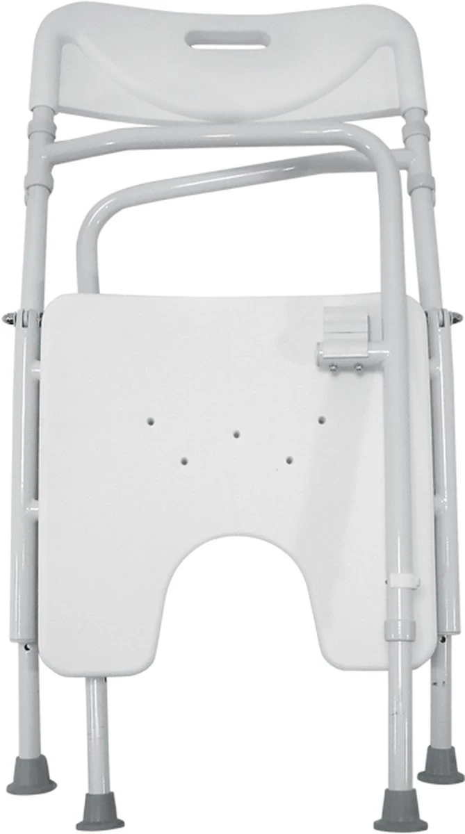 De douchestoel is gemakkelijk opvouwbaar waarbij de zitting naar beneden kan worden geklapt en de douchestoel vervolgens gemakkelijk naar binnen kan worden gevouwen.