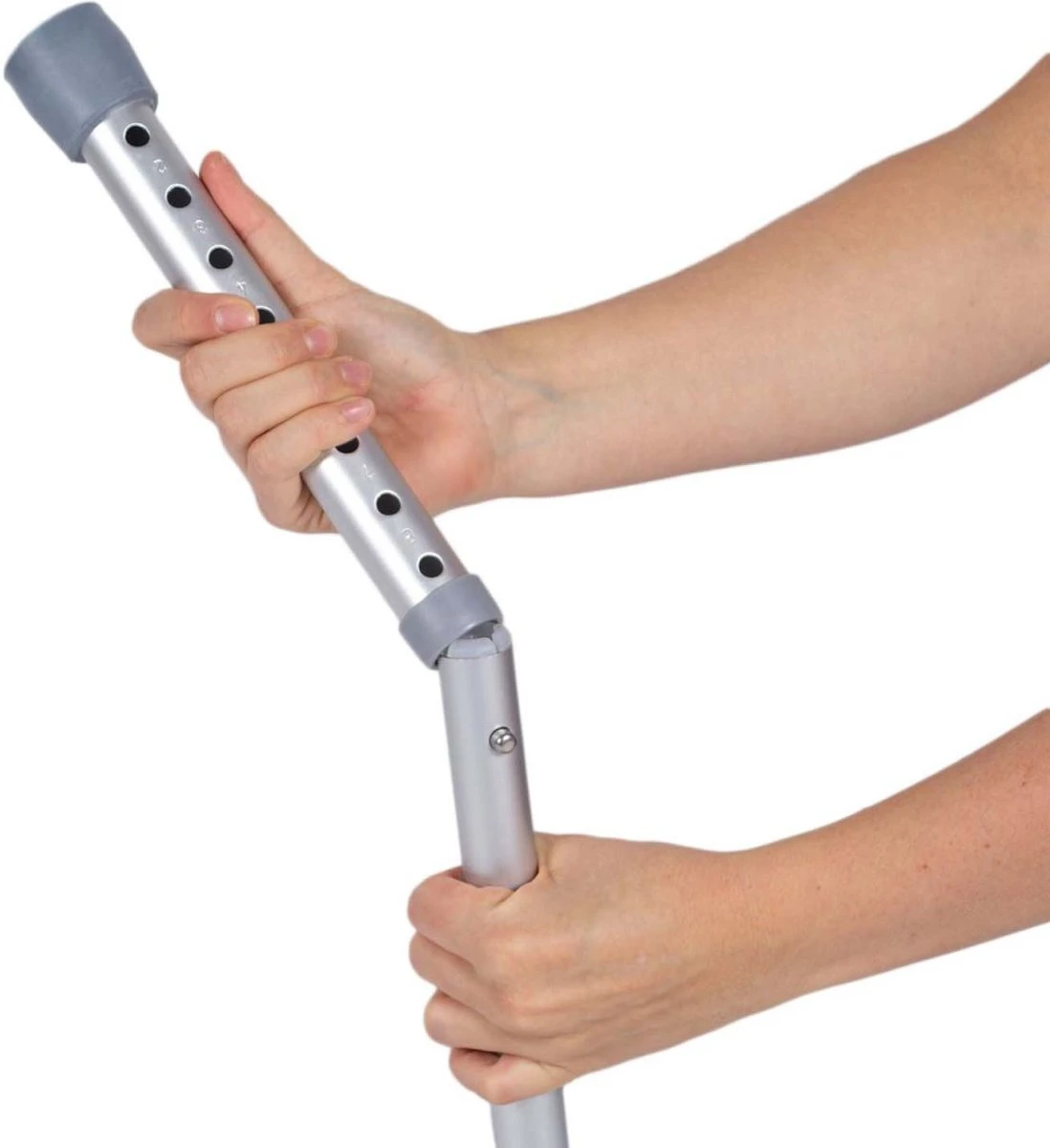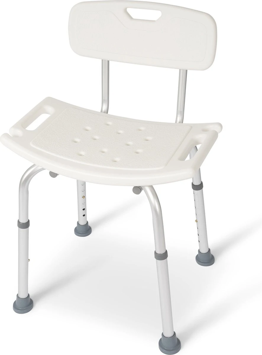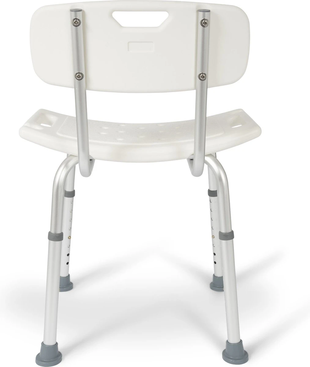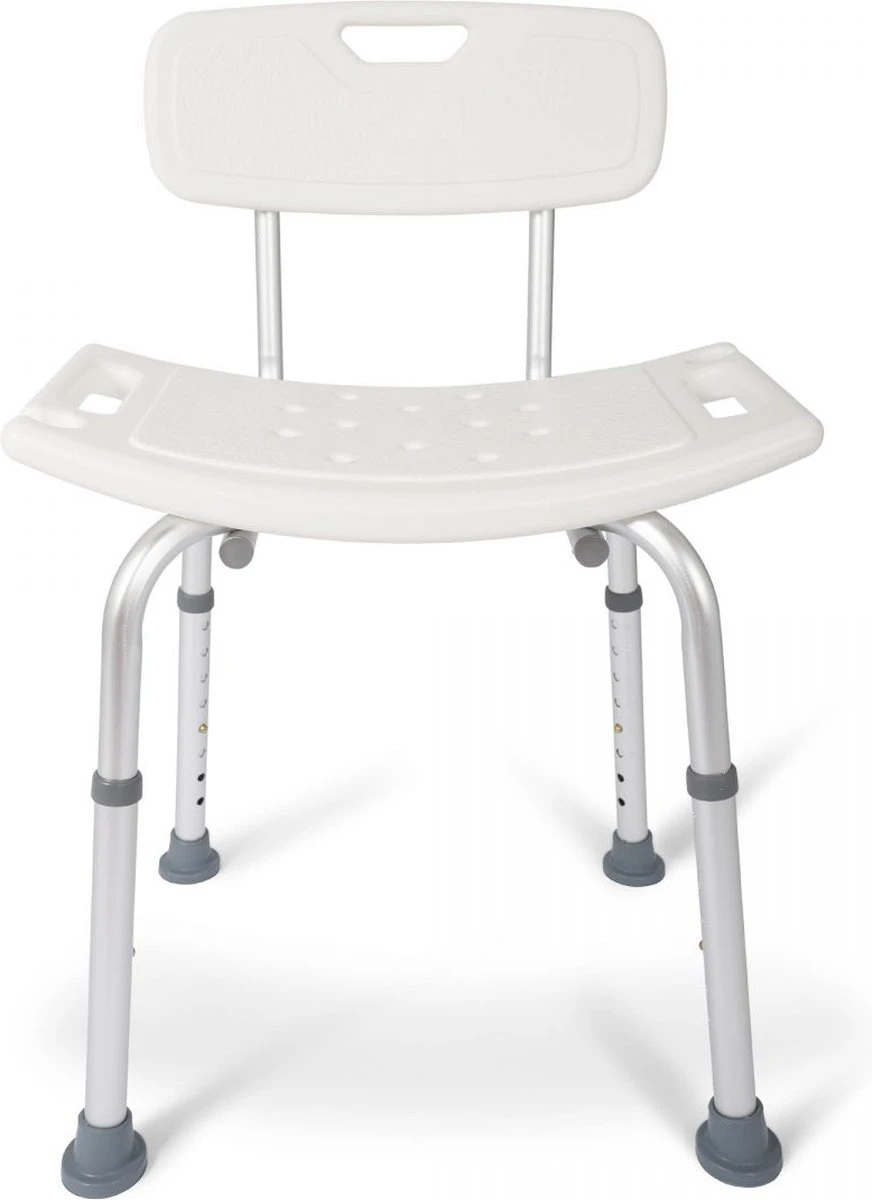 De Dunimed douchekruk met rugleuning is eenvoudig in hoogte verstelbaar van 39 tot 52 cm waardoor deze geschikt is voor bijna iedere lengte.