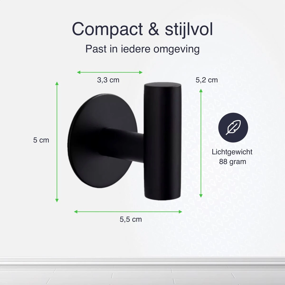 Handdoeken, theedoeken, vaatdoeken, als je ze gebruikt moeten ze droog en schoon zijn. Met deze handige ophanghaken, die je dankzij de sterke plakstrip makkelijk op een muur of kastje kunt plakken, heb je altijd een plekje om je doeken op te hangen. De zelfklevende haakjes zijn gemaakt van RVS, zwart van kleur en eenvoudig te monteren. Je hoeft er namelijk niet voor te boren. Een must have voor je badkamer of keuken.