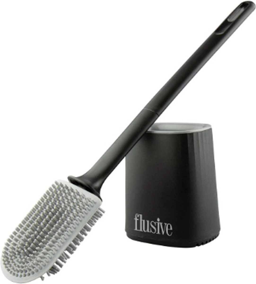 Flusive WC Borstel Met Houder Inclusief Ophangsysteem – Siliconen Toiletborstel – 2 Lifters – Flexibel – Zwart