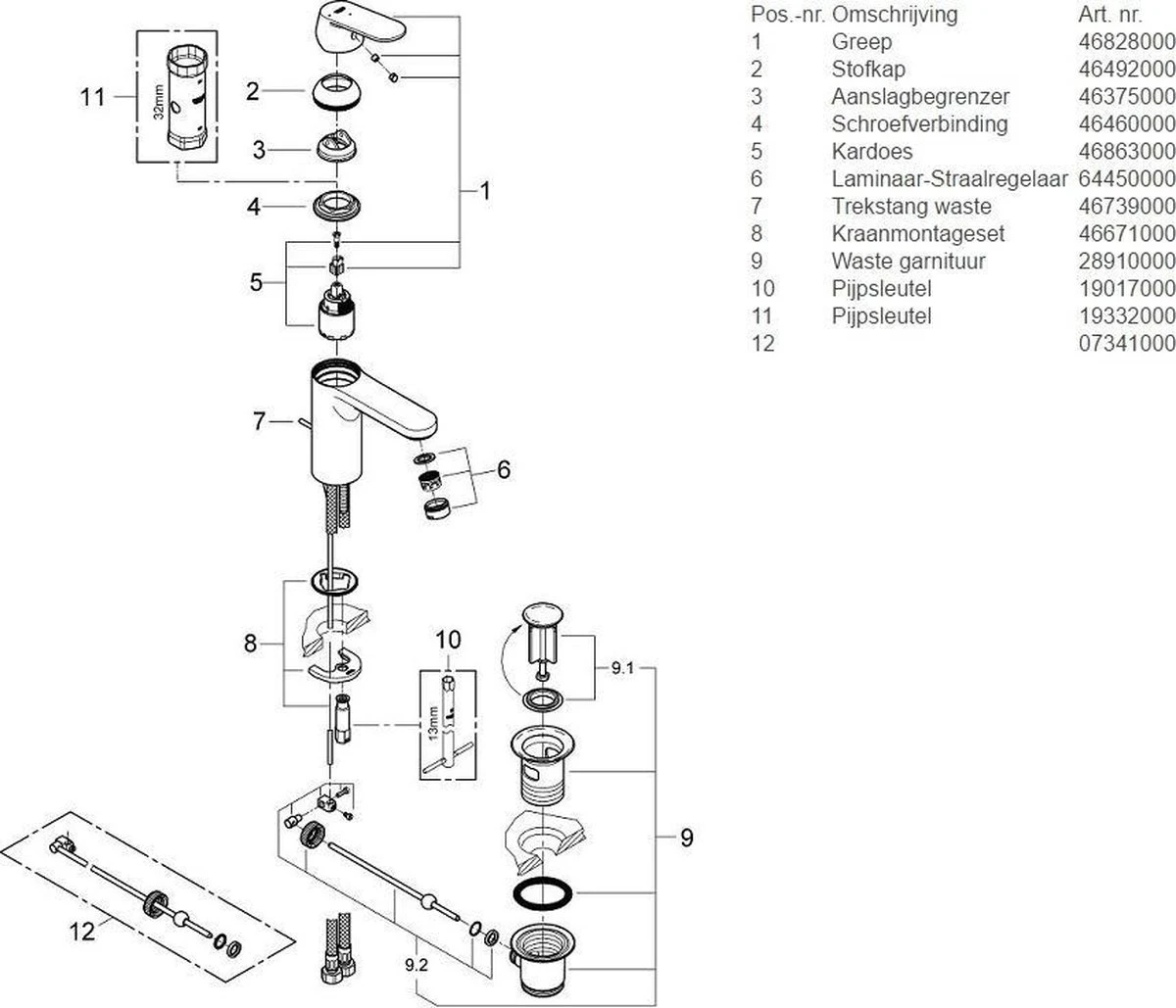- Type kraanbediening: hendel