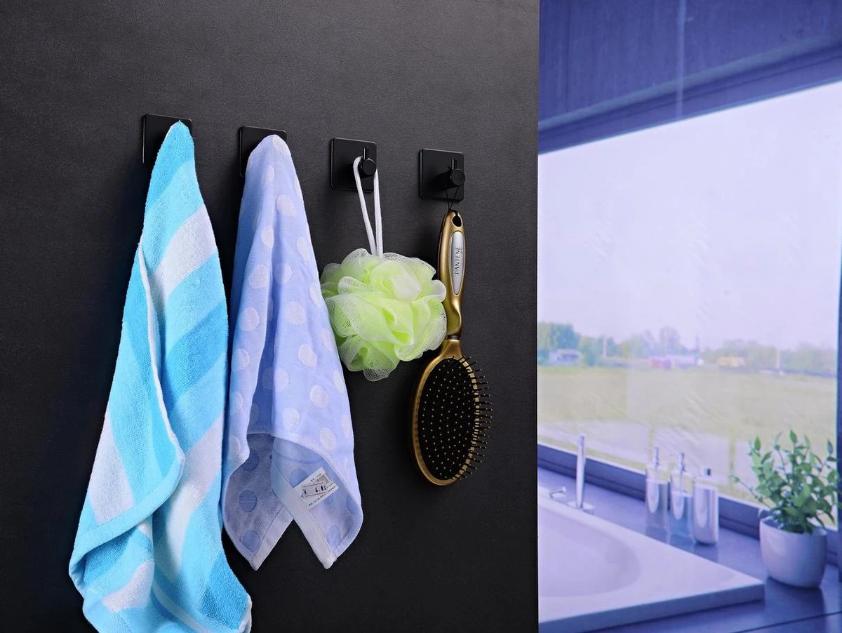 Handdoekhaakjes – Badkamer Zelfklevend – 4 Stuks – RVS – Zwart