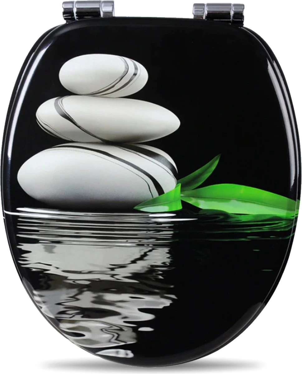 De unieke print op de bril voegt een kalme en ruimtelijke sfeer toe aan jouw toilet. Kortom, ideaal als vervanging voor een saaie witte bril! Daarnaast is het gemaakt van duroplast. Dit maakt de bril glad, antibacterieel en bovendien eenvoudig schoon te maken. De scharnieren zijn van roestvrij staal, dit is stevig en duurzaam.