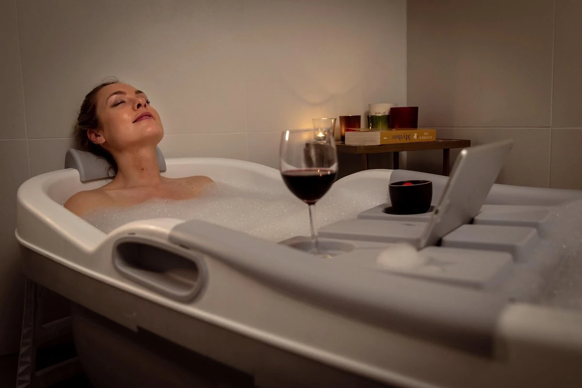 Door de bijgeleverde 3-delige deksel op het bad te plaatsen, geniet je tot wel een uur lang van warm water. Gebruik de middelste deksel als badplank voor je hapje, drankje en laptop of tablet om lekker van je favoriete serie te genieten. De ingebouwde voetmassagerollers stimuleren de bloedcirculatie van de voeten en geeft verlichting bij rusteloze benen. Heb je behoefte aan gezelschap in bad? Dan kan (het afritsbare gedeelte van) het badkussen over de rollers worden geplaatst.