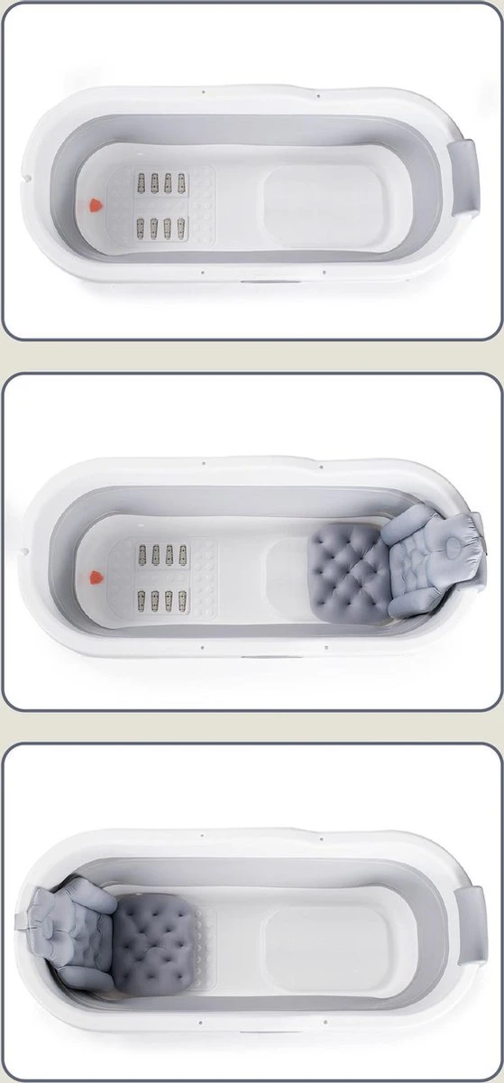 Extra lang XXL opvouwbaar bad / Bath Bucket voor volwassenen inclusief deksels, uitschuifbare afvoerslang van 0,6 tot 3,0 meter lang, opberghoes, onderwaterlamp en badkussen.
