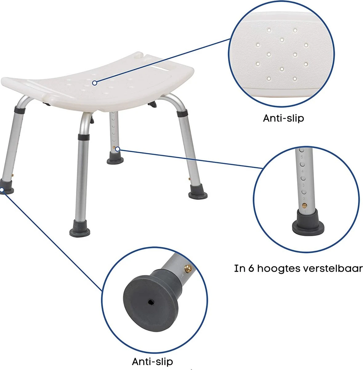 Life&Home Douchekruk – Wandbeugel Bijgeleverd – Douchestoel – 6 Hoogtes – Max 130 Kg – Handgrepen