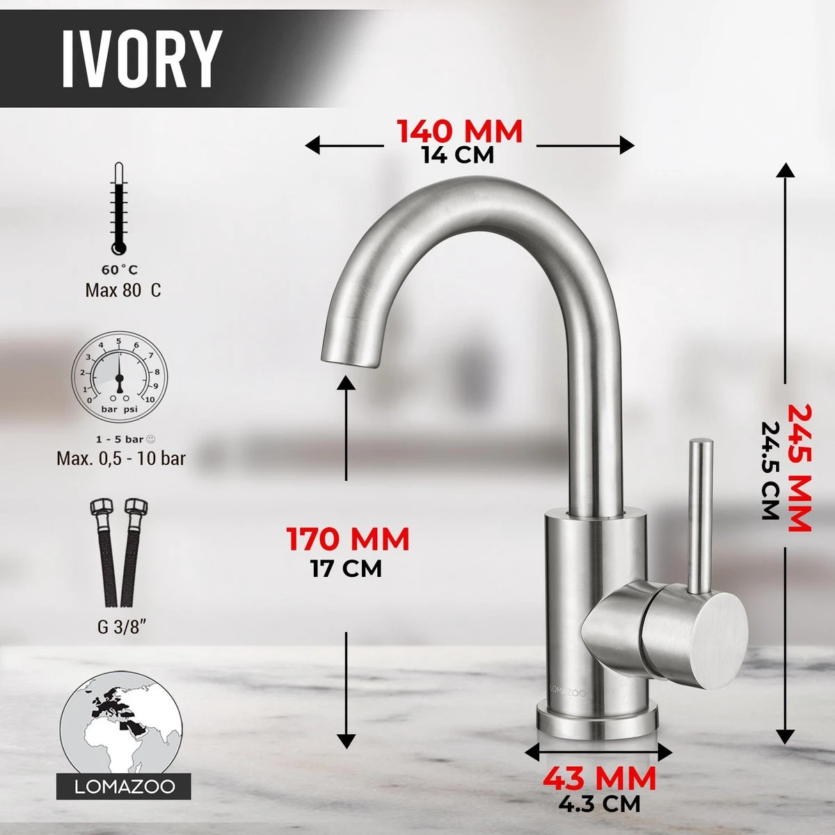 LOMAZOO Wastafelkraan Ivory – Mengkraan Wastafel – Kraan Badkamer – Wastafelmengkraan RVS