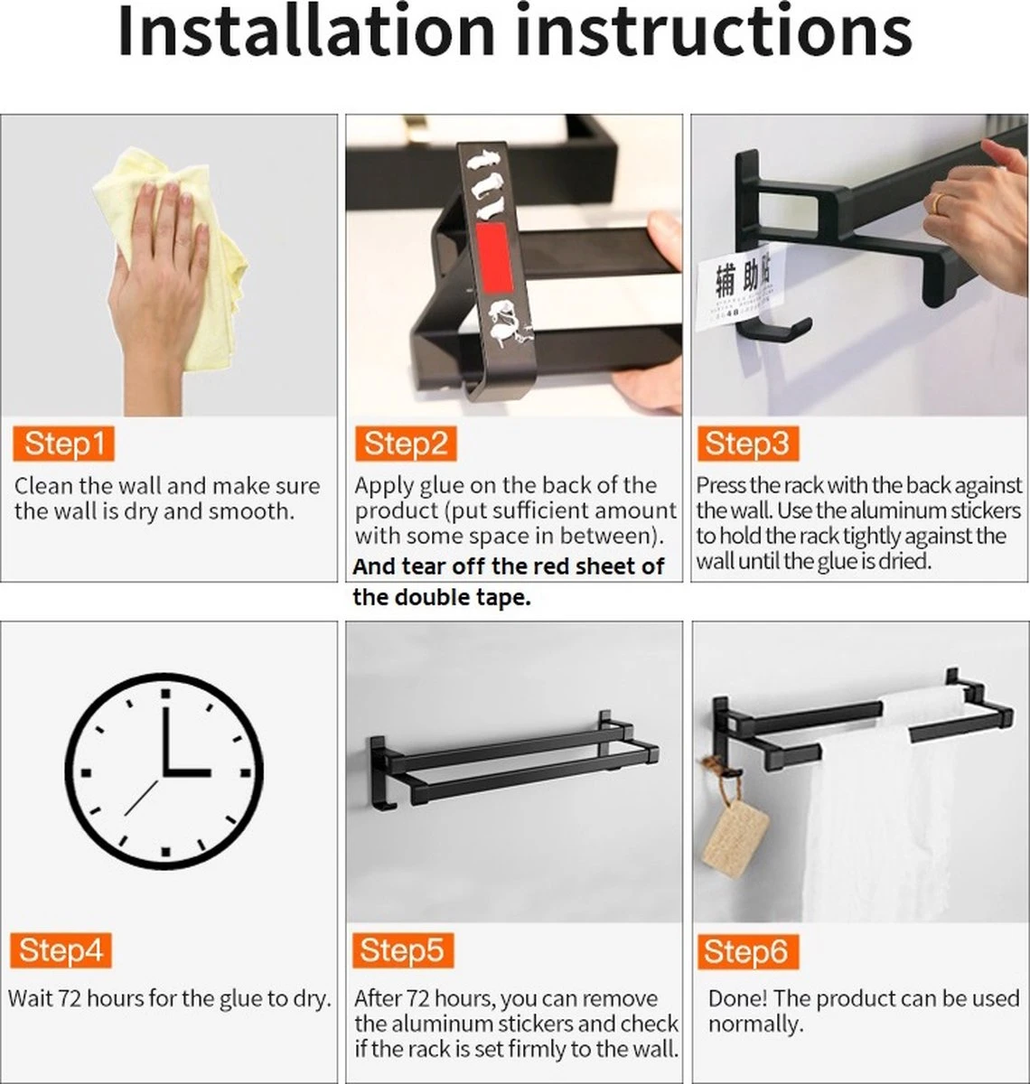 Let op! Deze handdoekrek kan alleen worden opgehangen doormiddel van de bijgeleverde sterke lijm. Er zit geen gaatjes op het product voor schroeven.