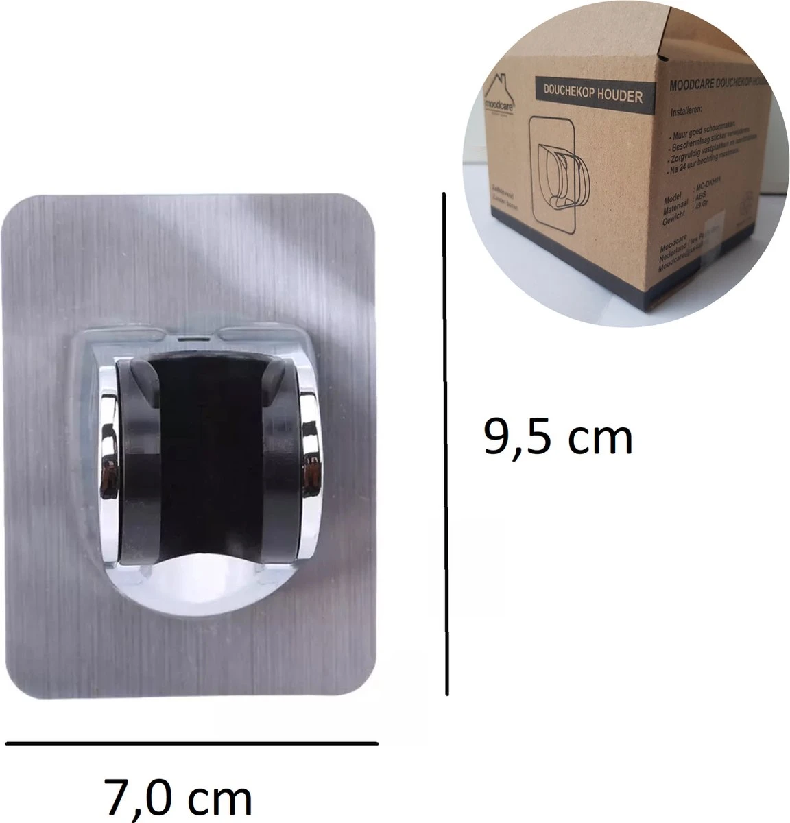 Licht, duurzaam, roestbestendig en schimmelbestand. Deze douchehouder is gemaakt van chroom-gepolijste ABS kunststof en weegt slechts 50 gram en meet, inclusief bevestigingssticker, 9,5cm x 7cm x 6cm (lxbxh). Een lichtgewicht klaar voor het zware werk.