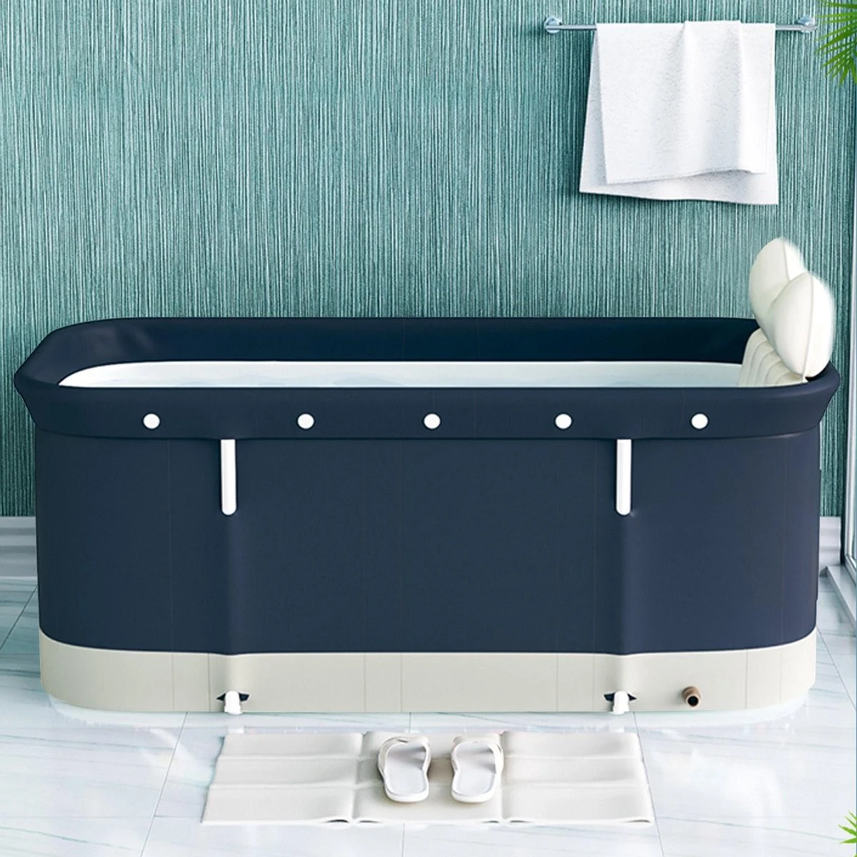 Merkloos Opvouwbaar Bad Voor Volwassenen | Opblaasbaar Zitbad BLAUW – Mobiele Badkuip – Bath Bucket – Zwembad