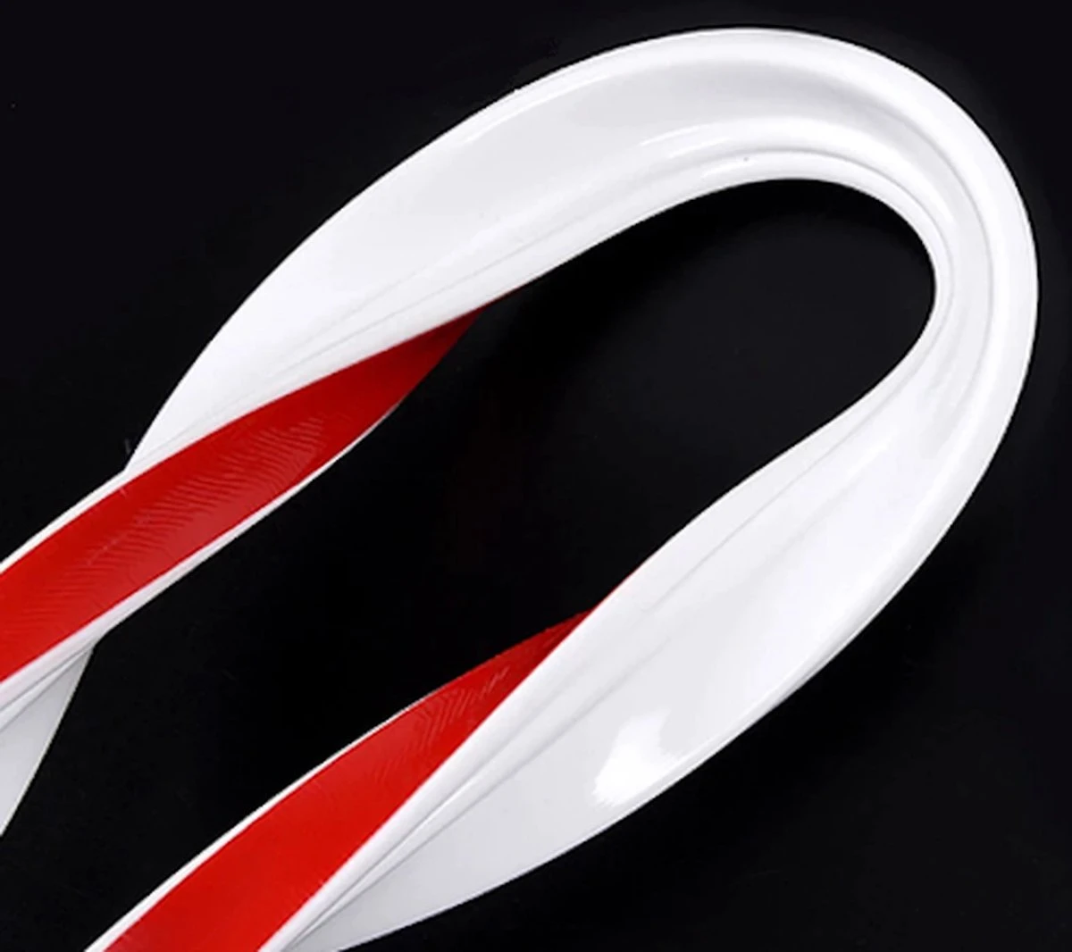 Doordat de strip zo buigzaam is kan deze in elke vorm gebracht worden, plak de strip vervolgens vast aan de vloer met behulp van de zelf-klevende laag aan de onderzijde.