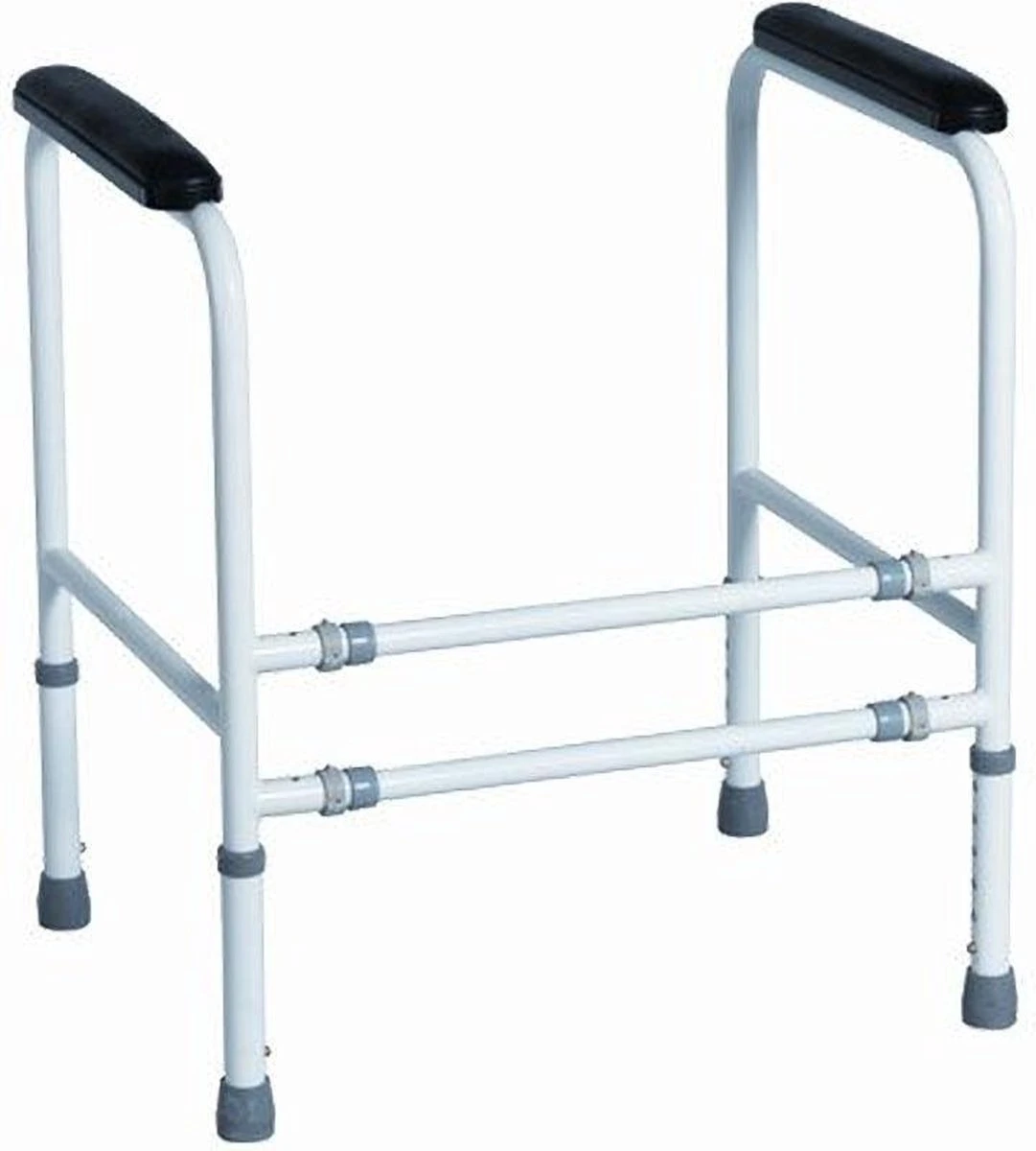 Dit verstelbare toiletframe kan zowel in de hoogte als in de breedte versteld worden. Door deze aanpasmogelijkheden past het toiletframe op vrijwel alle toiletten. Plaats het frame om het toilet en gebruik de handvatten als steunpunt bij het opstaan.
