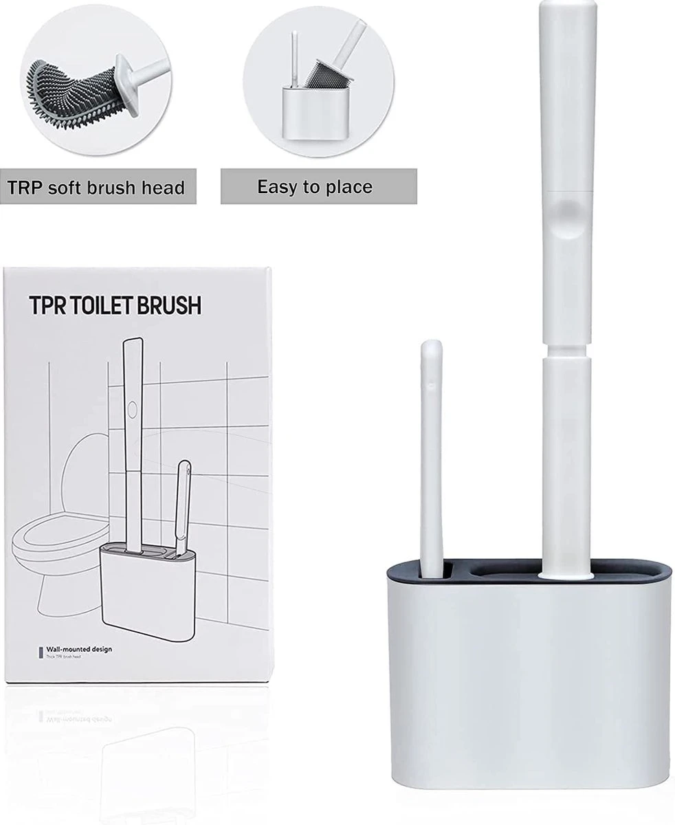 Flexibele siliconen platte puntige borstel kan de rand van het toilet beter reinigen door de borstelkop in verschillende hoeken te buigen. Voor doodlopende wegen, uitgerust met een gebruiksvriendelijkere reinigingsborstel