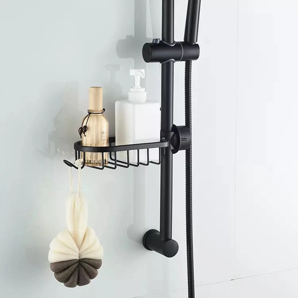 Een stevige doucherek zonder boren of zuignappen? Dat kan! Onze doucherek is vast te maken aan uw douchestang (glijstang) en blijft verbluffend goed zitten. Het is aluminium en waterbestendig tegen roest. Door de gaten houdt het rek geen vocht vast en is het niet nodig om het te spoelen. Groot van formaat voor meerdere bad artikelen met nog eens een haak voor uw badspons.