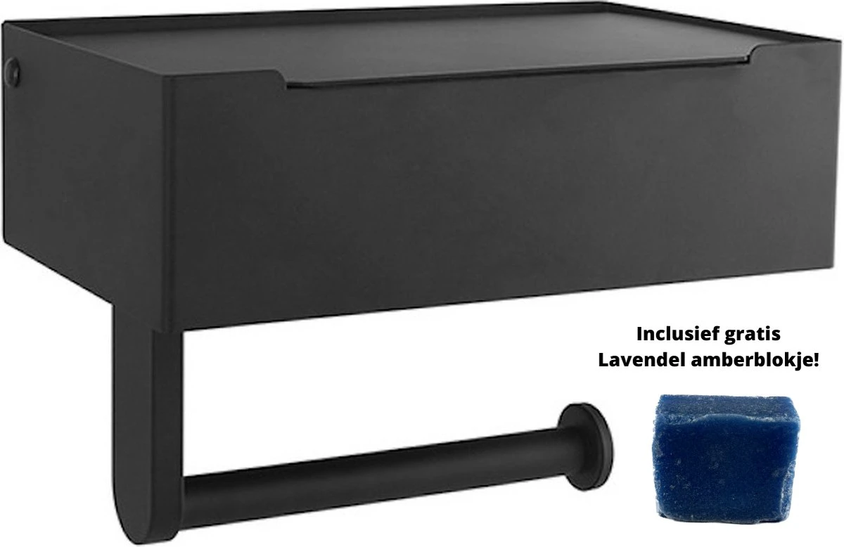 NIRAX Toiletrolhouder – WC rolhouder – Zwart – RVS – Met bakje voor vochtig toiletpapier – Zonder boren – Zelfklevend – Toilet accessoires – Badkamer accessoire – Toiletpapier houder