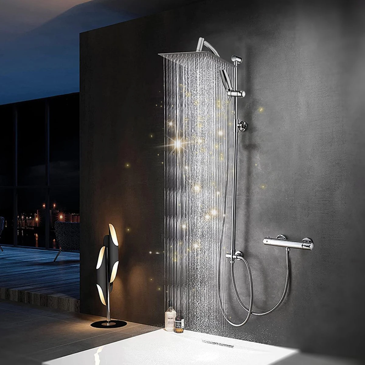 De Regendouchekop XL Deluxe maakt van uw normale alledaagse douchebeurt een heerlijke en unieke douche-ervaring. Installeren is eenvoudiger dan ooit en kan in elke badkamer. U kunt uw huidige douchekop makkelijk vervangen door onze douchekop vanwege de universele maat, zonder te hoeven boren. Deze set wordt geleverd met een doucheslang en muurbeugel. Zo hoeft u zich nooit zorgen te maken over de montage. De douchekop is te gebruiken als handdouche of hoofddouche.
