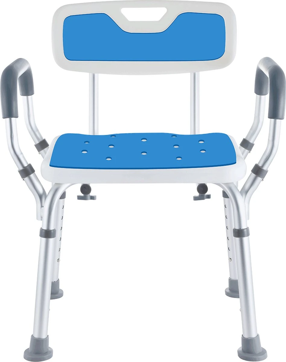 Rubberen antislip poten en de rugleuning zorgen voor extra veiligheid onder de douche of in bad. Deze douchestoel wordt vaak gebruikt door volwassenen, zwangere vrouwen of mensen met een handicap. De gevoerde zitting en handgrepen zorgen voor extra comfort.