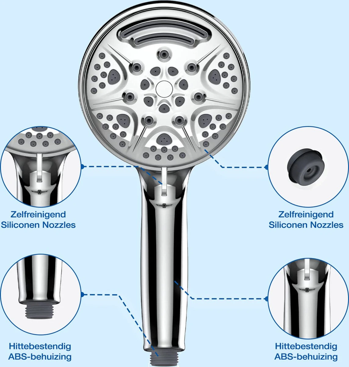 Dagelijks gebruiken we veel water. Tijdens het nemen van een douche kan dat oplopen tot gemiddeld acht liter water per minuut. Met de waterbegrenzer die standaard is ingebouwd in onze douchekop schroef je dat aantal liters behoorlijk terug, zonder dat je dit merkt bij het douchen. Bij een druk van één bar is dat vijf liter. Dat is een besparing van 35 procent! Beter voor het milieu en beter voor je portemonnee dus. Liever geen waterbegrenzer? Deze verwijder je eenvoudig uit de handdouche.