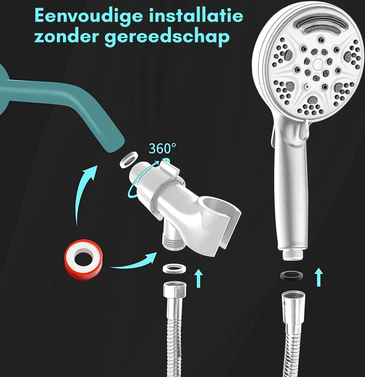 • Met universele aansluiting voor iedere doucheslang (G 1/2”)