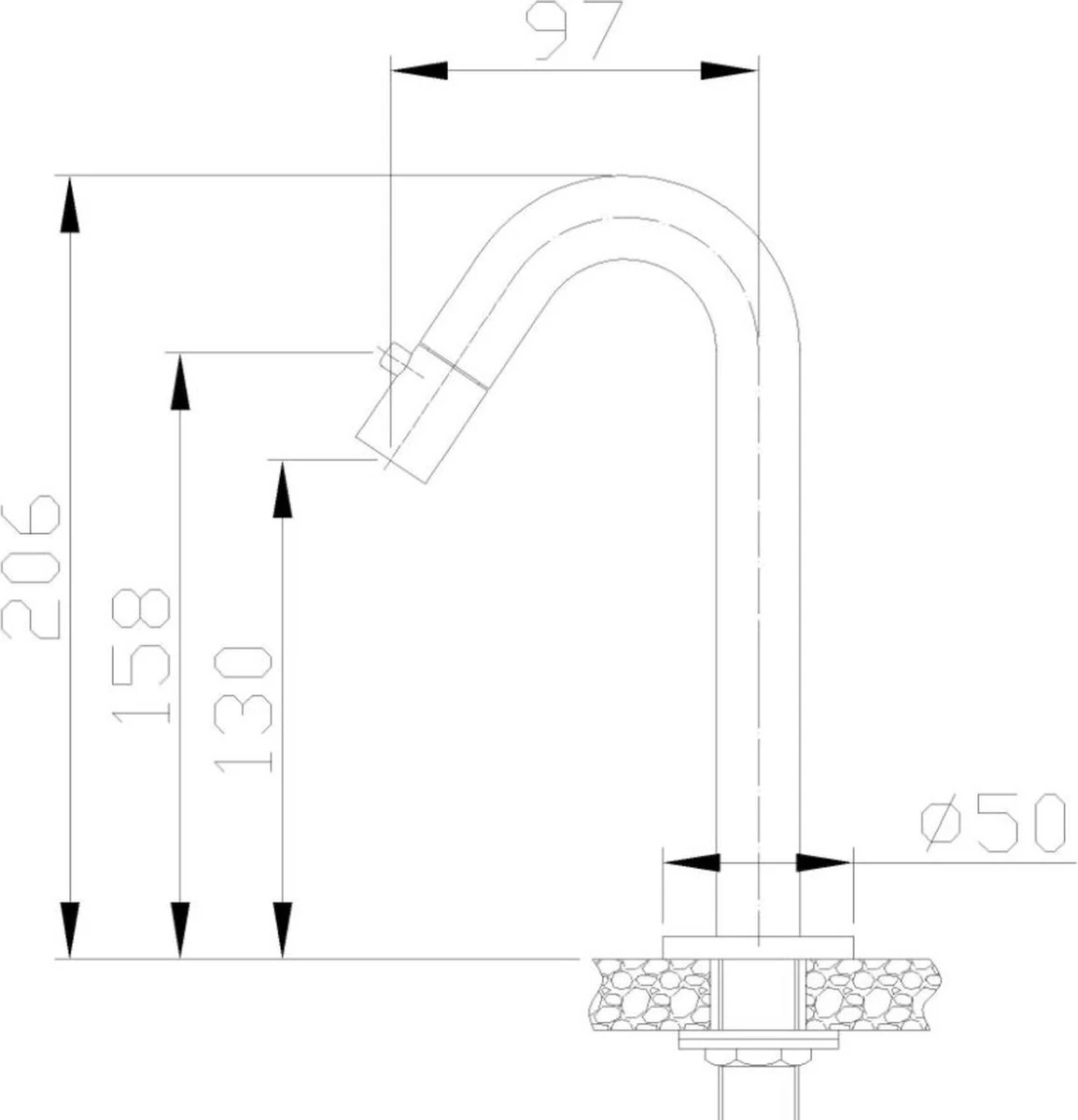 - • De kraan heeft de afmetingen 5x15x20.6cm en de diameter van het kraangat is 3.40cm