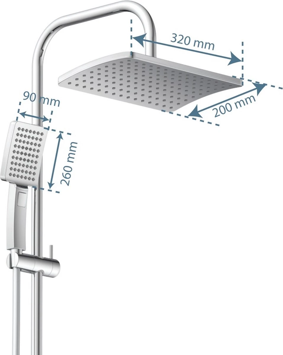 SCHÜTTE Mallorca Douchesysteem – Regendouche – 95 Cm Stang – Wandhouder In Hoogte Verstelbaar – Chroom
