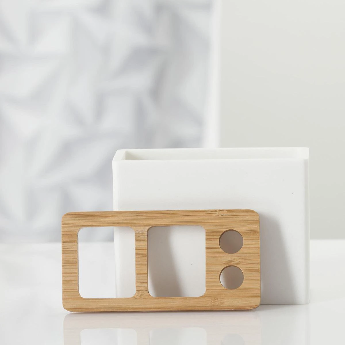 Gecombineerde materialen is de trend van nu. De Sealskin Grace serie in wit polyresin gecombineerd met bamboe accenten, sluit daar perfect bij aan. De tandenborstelhouder is geschikt voor de elektrische tandenborstel. Daarnaast passen ook je opzetborsteltjes en je tube tandpasta in deze houder. De houder is eenvoudig te reinigen met een vochtige doek.