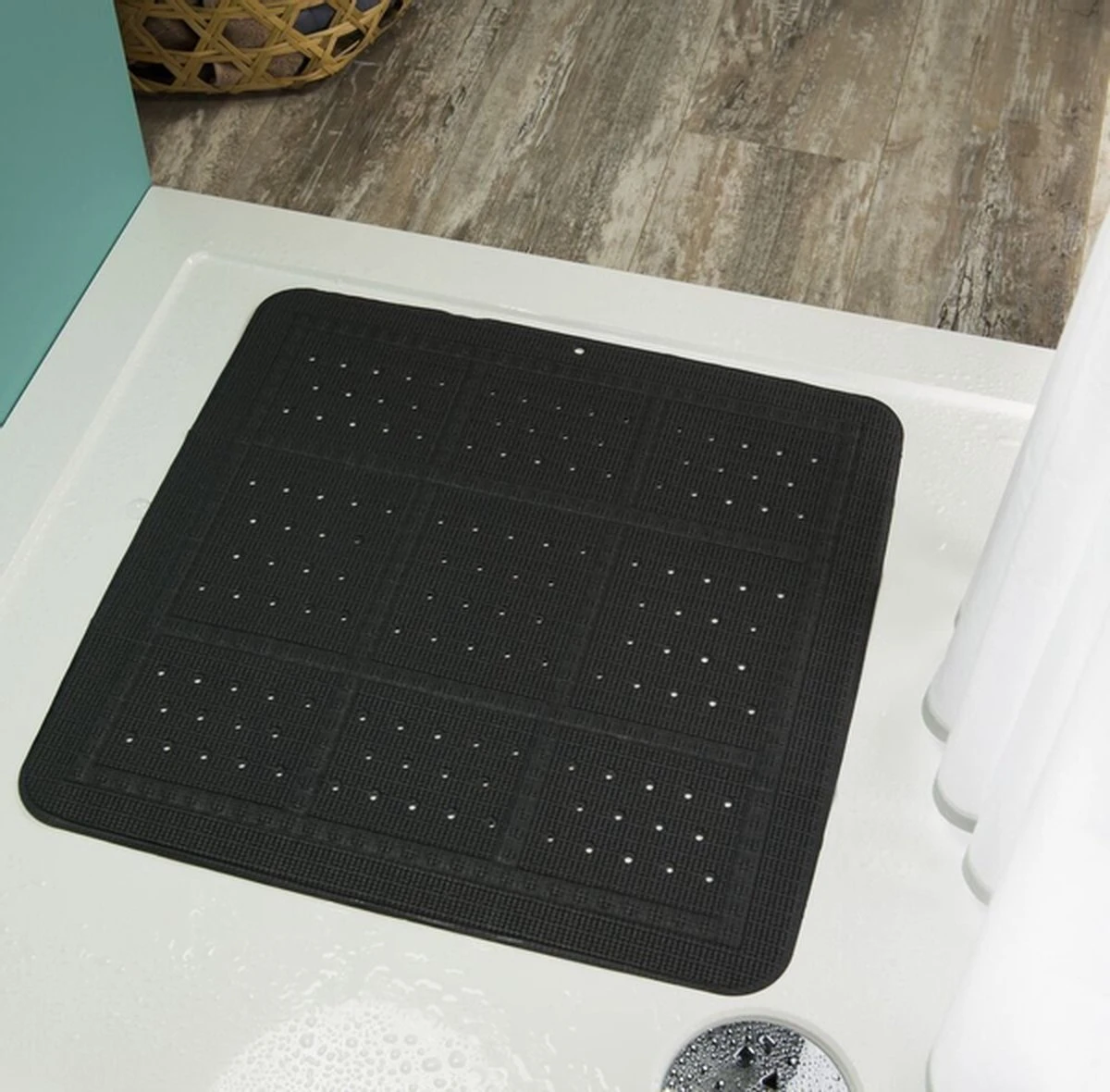 Met de Sealskin Unilux antislipmat van PVC zorg je voor extra veiligheid in jouw badkamer. Deze vierkante antislipmat is aan de onderzijde uitgerust met zuignappen zodat je deze stevig kunt bevestigen in je douche om uitglijden te voorkomen. Het water kan gemakkelijk weglopen door de gaatjes in de mat. De antislipmat is uitgevoerd in de kleur antraciet en dankzij zijn formaat van 55×55 cm is hij uitermate geschikt voor in je douchecabine. De mat kan eenvoudig met de hand gereinigd worden maar mag zelfs op een 30 graden fijnwasprogramma in je wasmachine.