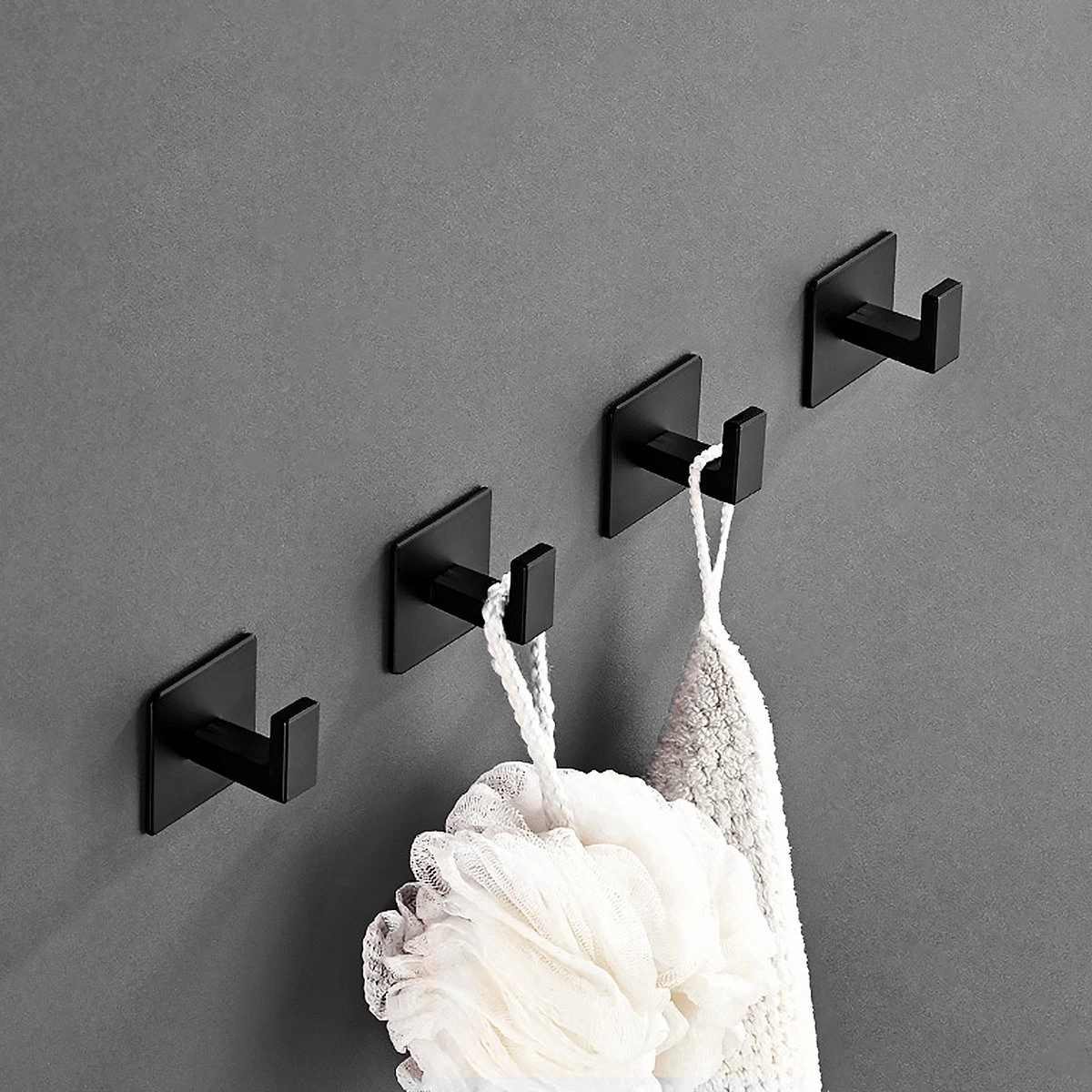 Je hebt je keuken, douche, badkamer en wc zorgvuldig gestyled. Dan wil je ook bijpassende handdoekhaakjes voor je handdoeken en theedoeken. Deze stijlvolle set van 4 vierkante zelfklevende handdoekhaakjes is uitgevoerd in modern mat zwart voor een industriële look.