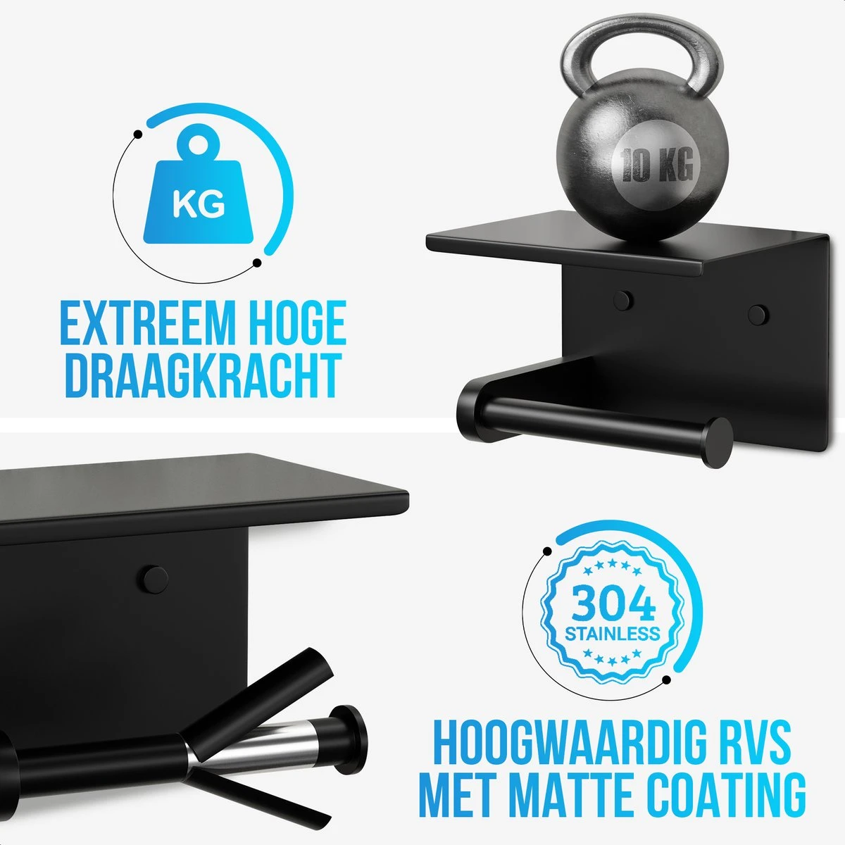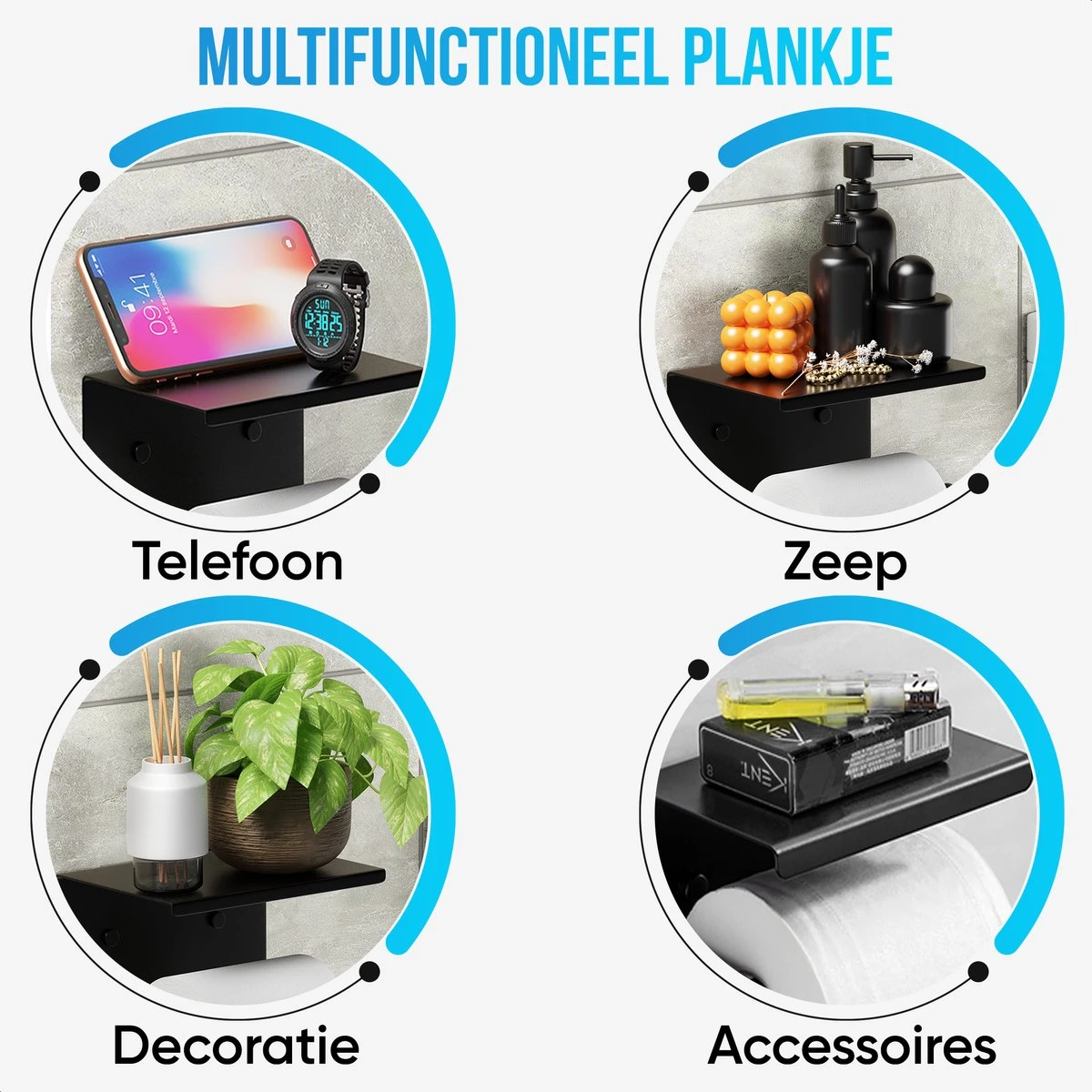 Met een handig smartphone plankje, zwarte accenten en een simpel plaksysteem is deze slimme wc-rolhouder mooi én functioneel! Deze stijlvolle toiletpapierhouder creëert extra ruimte op het toilet zodat jij comfortabel kunt genieten van een momentje voor jezelf. Wil jij je telefoon, een luchtje of extra rol wc-papier kwijt? Met dit slimme ontwerp heb jij alles binnen handbereik.