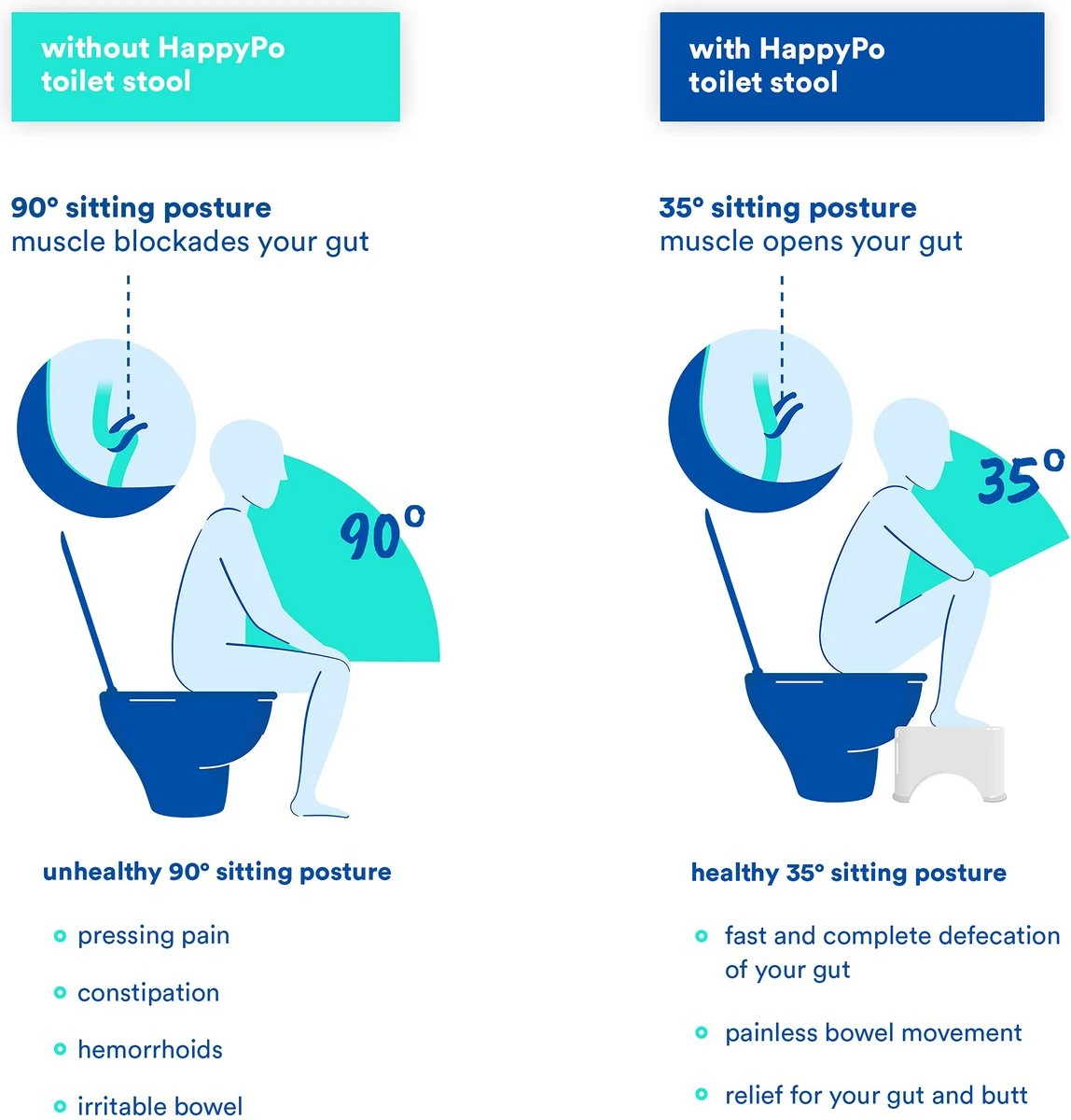 - De ORIGINELE HAPPYPO TOILET HOOK – maakt de door artsen aanbevolen zithouding mogelijk bij ontlasting in een hoek van 35 graden. Door deze anatomisch gezonde zithouding met de wc-kruk is een gemakkelijkere en meer ontspannen stoelgang mogelijk.