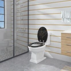 Allibert Wc-bril ATLAS – Geperst Hout – Afklikbaar – Met Regelplaat – Anthraciet Grijs Gelakt