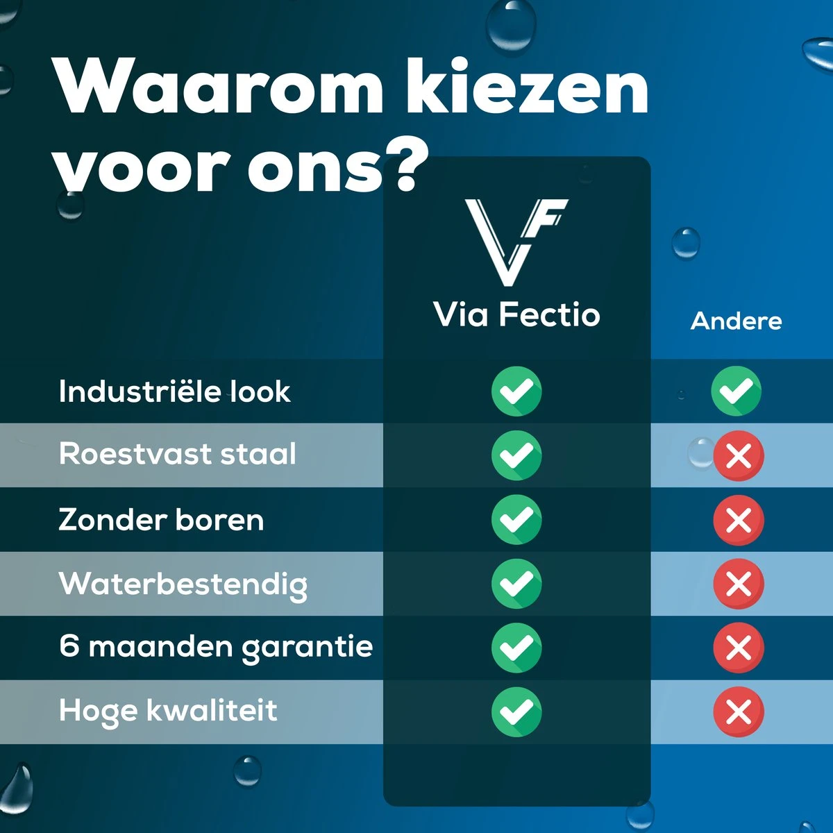 Het zelfklevend doucherek van Via Fectio® is eenvoudig te installeren met de bijgeleverde installatieset en digitale handleiding. De installatieset bestaat uit 2 sterke plakstrippen met afgewerkt met een metaallook. Deze plakstrip is waterbestendig en zorgt ervoor dat je niet hoeft te boren in je doucheruimte. Hierdoor blijven de muren in de badkamer netjes en kun je gemakkelijk alle douche spullen opbergen.