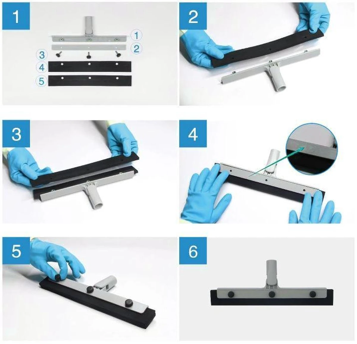De VITAMO™ vloerwisser bestaat uit meerdere duurzame onderdelen: Een aluminium stang die je kunt verstellen van 70 cm tot 125 cm, een afdraaibare schuimrubberen wisser van 30 cm breed en een handige ophangsysteem voor aan de muur. De wisser werkt efficiënt en kan worden gebruikt op meerdere plekken, zoals de vloer en de ramen. De siliconen handgreep zorgt voor een comfortabele grip. De bevestiging tussen de wisser en de steel functioneert als scharnierpunt die 180° kan draaien, waardoor je gemakkelijk alle hoekjes kan meepakken!