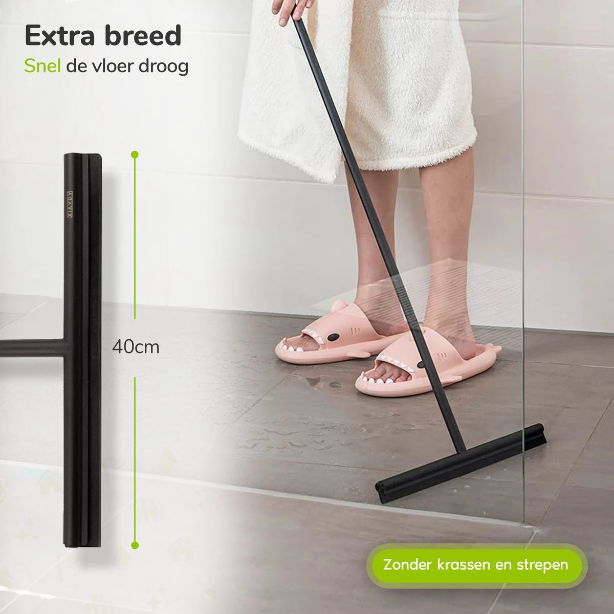 Net een nieuwe badkamer met inloopdouche? Frustreer jezelf dan niet met een schrale houten vloerwisser. Ga voor luxe en gebruiksgemak. Een zwarte vloertrekker met steel trekt goed droog én is een aanwinst voor het badkamerinterieur!