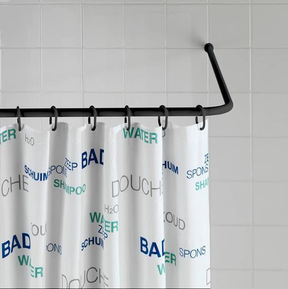 Deze aluminium douchegordijnstang in trendy zwart kun je in L-vorm of U-vorm ophangen en is ideaal voor bij je bad of douche.