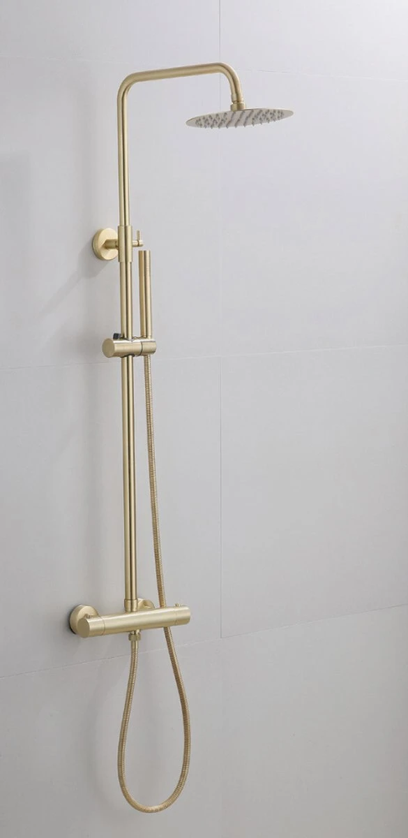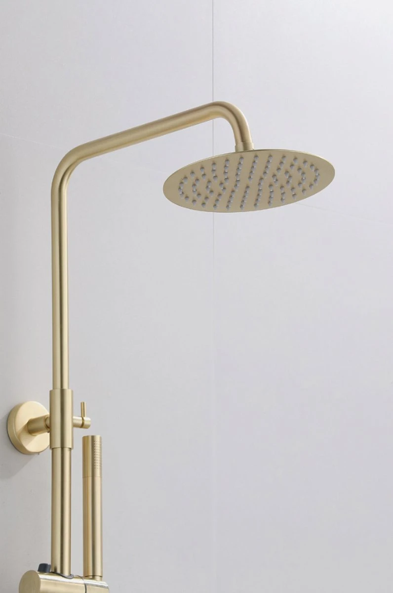 Wesseling & Bos Doucheset – Regendouche Mat Goud Geborsteld – Doucheset Met Thermostaatkraan – Atlanta