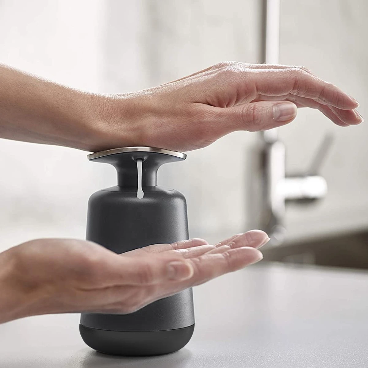 Extra grote pompkop maakt het gemakkelijk te bedienen met de pols of onderarm.